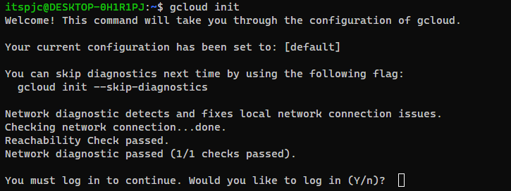 설치가 끝났다면 gcloud init 를 입력해준다.