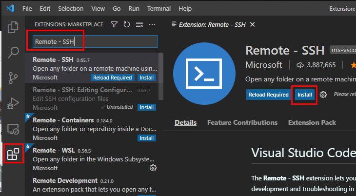 1. VS Code 를 실행하여 Extensions > Remote - SSH 를 설치한다. 이미 설치한 분들은 스킵해도 된다.