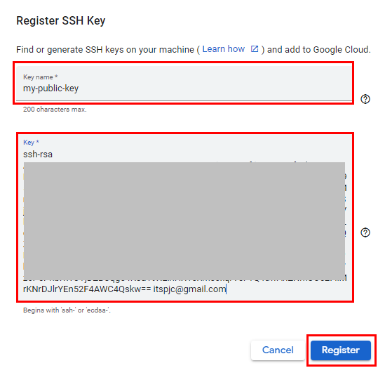 3. 방금 복사했던 Public Key의 내용을 넣어준다.