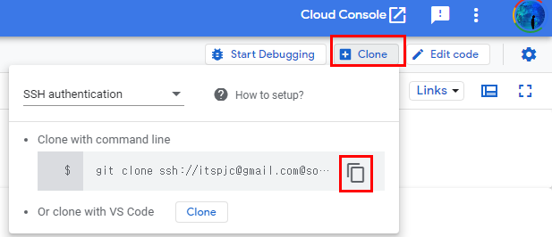 로컬 PC에서 GCP의 Source Repositories 에 코드를 커밋하거나 푸쉬할 수 있도록 SSH key로 연동을 해보자. 세팅 환경은 다음과 같다.