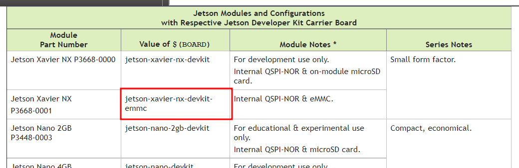 Jetson NX Module 의 경우에는 아래와 같이 jetson-xavier-nx-devkit-emmc 이다.
