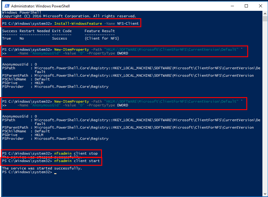 New-ItemProperty -Path "HKLM:\SOFTWARE\Microsoft\ClientForNFS\CurrentVersion\Default" `