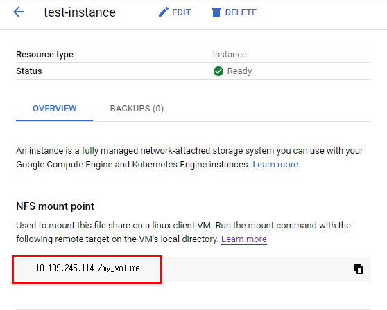 sudo mount 10.199.245.114:/my_volume /filestore_share