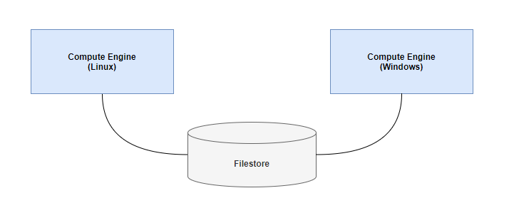 GCE (Google Compute Engine, 그냥 VM이라고 부르기도 한다)을 이용하다보면 주로 Linux 로 띄우겠지만 윈도우로 띄우는 경우도 있다. 필자의 회사 프로젝트에서는 Windows에서만 구동가능한 프로그램에서 처리한 데이터를 Linux로 다시 가져와서 처리해야 하는 경우도 있다. 이 경우 양 GCE간에 데이터를 주고받는 방식에는 여러가지가 있겠지만, 본 포스트에서는 GCP의 NAS 스토리지인 Filestore를 이용하여 동시에 NAS 마운트하는 방식을 설명하고자 한다. 이 방식은 크게 데이터 전송속도 이슈는 없으면서, 한쪽에서 대량의 파일들을 한꺼번에 생성하지만 필요한 파일들만 다른 쪽에서 골라서 데이터를 가져간다거나, 마치 같은 공유 디렉토리처럼 쓰고 싶을때는 이 방법이 좋다고 본다.